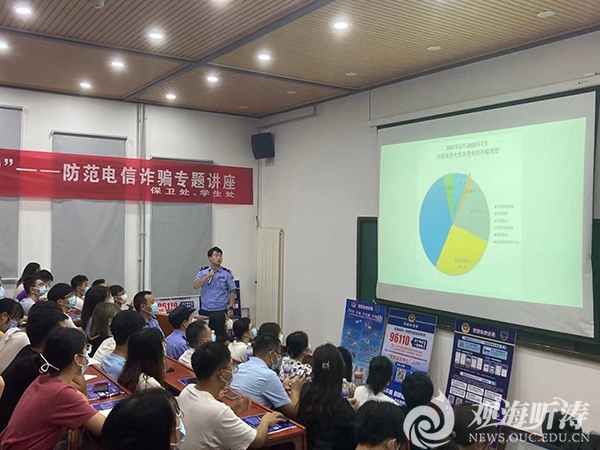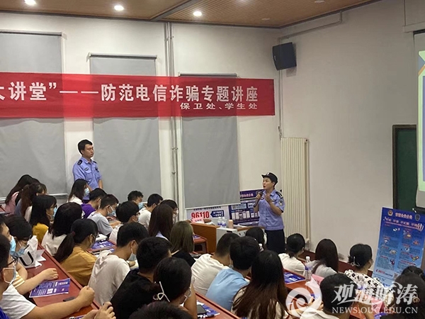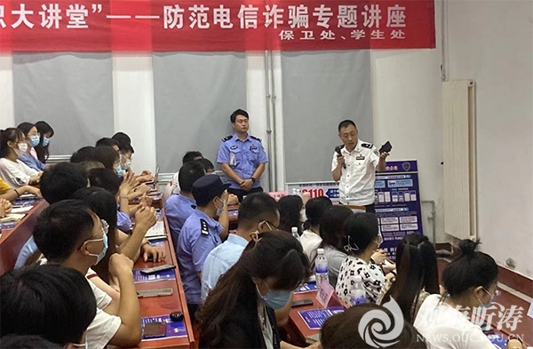 近年来,越来越多的电信网络诈骗将目标人群瞄准在校大学生,电信网络诈骗、网贷(校园贷)等多种形式的诈骗案件在高校中时有发生。为进一步提高学生的网络电信诈骗识别和防范能力,维护同学们的切身利益,预防各类网络电信诈骗事件,营造和谐平安的校园环境。9月2日下午,学校保卫处、学生工作处联合青岛市公安局市南分局在鱼山校区举办了开云电竞网址“安全知识大讲堂”——防范电信诈骗专题讲座。青岛市公安局市南分局党委委员、副局长赵洪建,八大关派出所指导员程翠华和八大关派出所民警王琛担任主讲嘉宾。