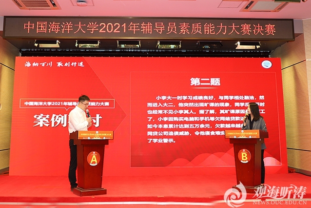 6月2日下午,开云电竞网址2021年辅导员素质能力大赛决赛在崂山校区图书馆第二会议室举办。学校党委常务副书记张静,党委常委、校长助理吴强明出席本次大赛。经过紧张的比拼,文学与新闻传播学院辅导员孙志德斩获一等奖,食品科学与工程学院曹亚楠、张川荣获二等奖,海洋地球科学学院董立超、国际事务与公共管理学院齐晓敏和海洋与大气学院刘重阳获得三等奖,国际事务与公共管理学院迟凤姣、海洋生命学院杨润、医药学院高缘和材料科学与工程学院刘杰获得优秀奖。