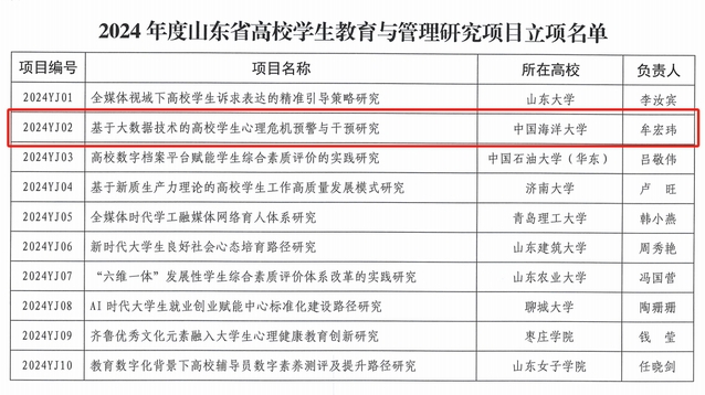 近日,山东省高等学校学生教育与管理研究会公布优秀科研成果、工作案例评审以及研究项目立项结果。学校获评优秀科研成果一等奖1项,获批研究项目立项1项。