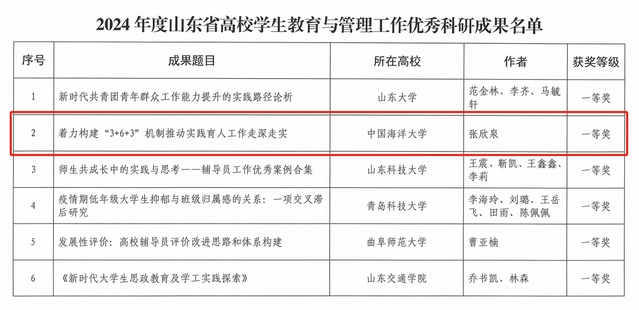 学校在山东省高校学生教育与管理工作评选活动中获佳绩
