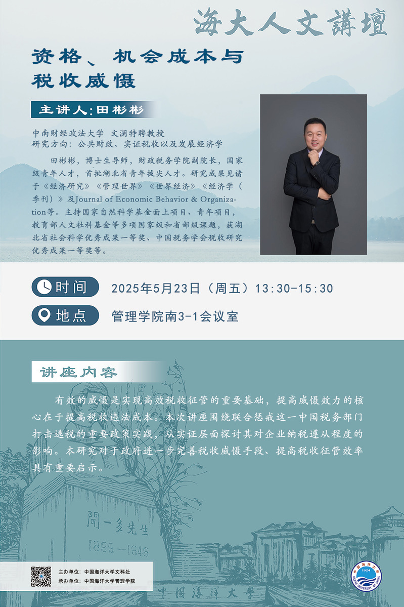 海大人文讲坛2025年第33讲-田彬彬:资格、机会成本与税收威慑