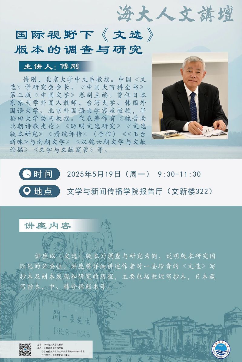 海大人文讲坛2025年第31讲-傅刚:国际视野下《文选》版本的调查与研究