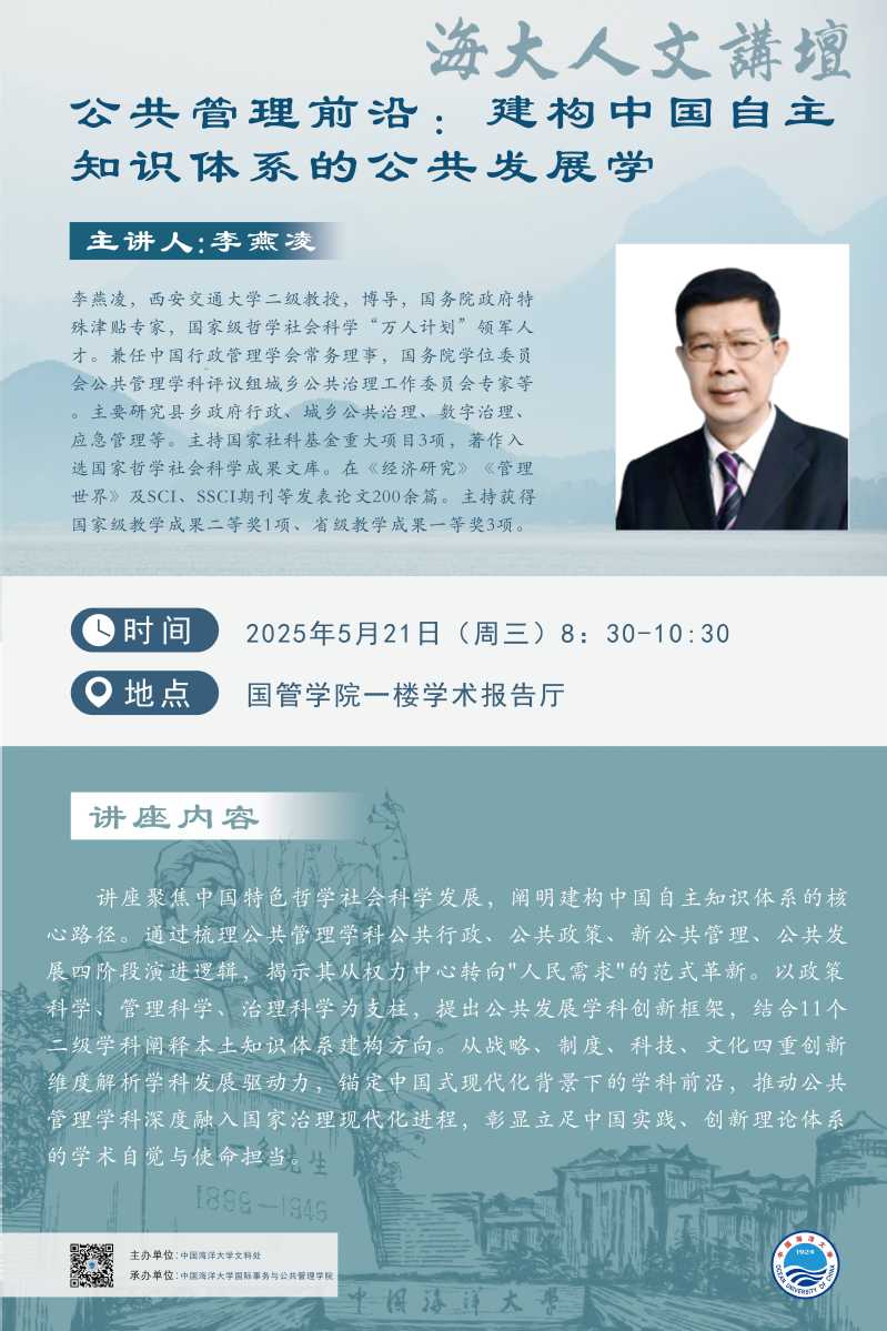 海大人文讲坛2025年第32讲-李燕凌:公共管理前沿:建构中国自主知识体系的公共发展学