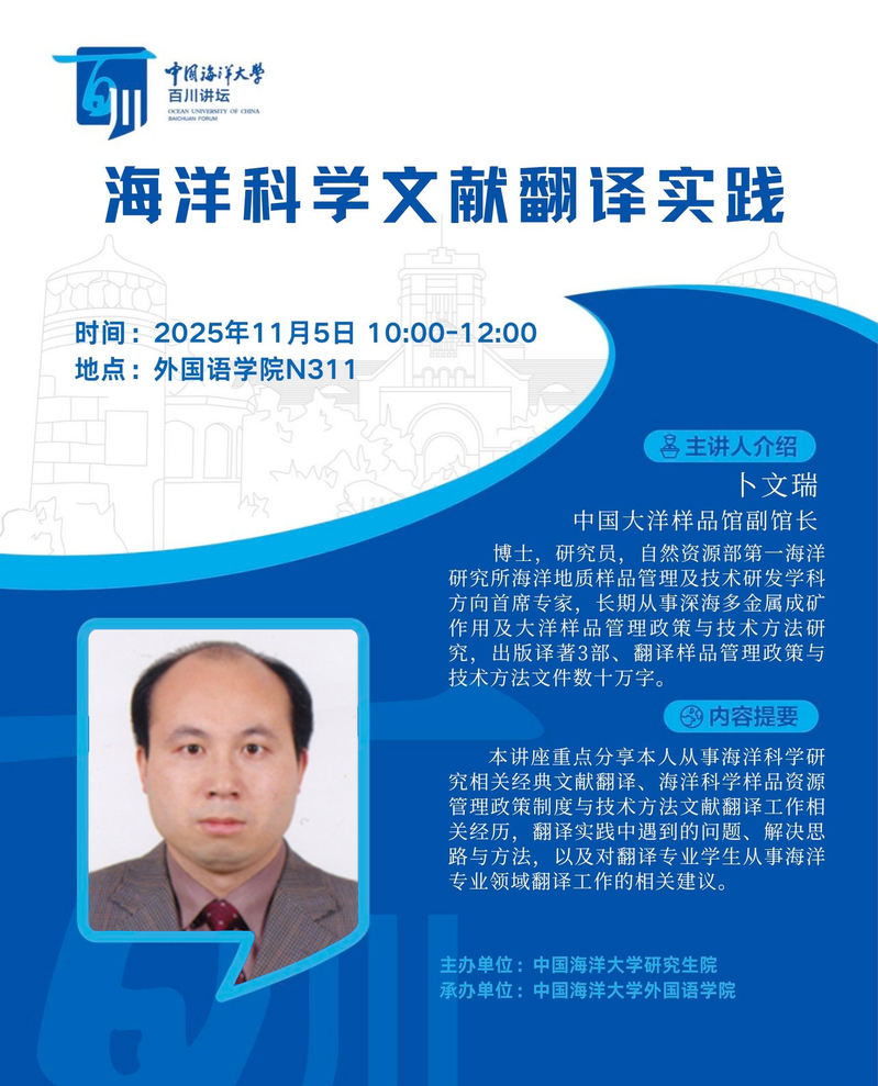 研究生百川讲坛第552讲-卜文瑞:海洋科学文献翻译实践
