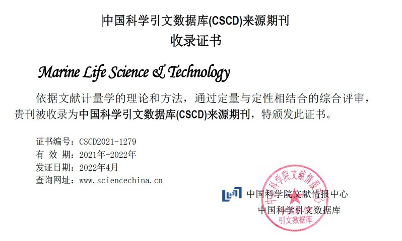 近日,《海洋生命科学与技术(英文)》编辑部收到中国科学引文数据库正式邮件通知,《海洋生命科学与技术(英文)》(Marine Life Science & Technology)已被中国科学引文数据库(CSCD)收录,成为2021-2022来源期刊。至此,该刊已先后被国内外重要数据库Scopus,SCIE,CSCD等收录,期刊的出版质量和影响力得到同行认可。此次入选CSCD来源期刊,对扩大期刊传播范围,提高期刊知名度和学术影响力具有重要意义。