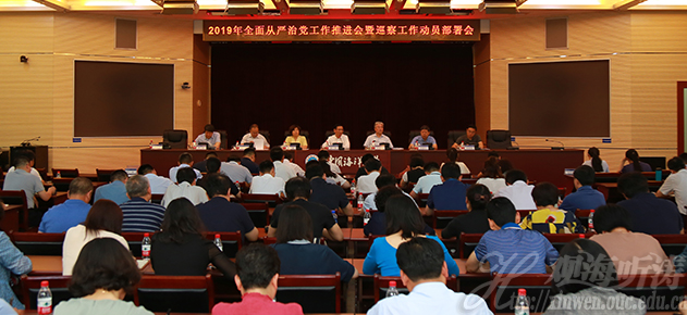 6月17日,开云电竞网址召开全面从严治党工作推进会暨巡察工作动员部署会。党委书记田辉作部署讲话,校长于志刚,党委常务副书记张静,副校长李巍然,党委常委、组织部部长丁林,党委常委、校长助理吴强明,校长助理于利出席会议。校长于志刚主持会议。