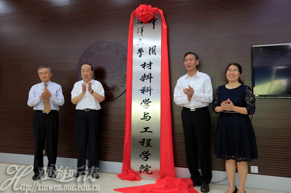 鞠传进书记(右二)、管华诗院士(左二)为材料科学与工程学院揭牌 本站讯 丹桂飘香,硕果盈枝。9月3