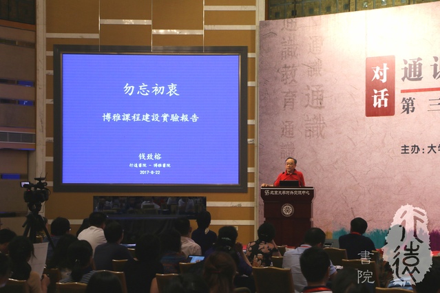 2017年8月22日,第三届大学通识教育联盟年会在北京大学英杰交流中心召开,近150名来自全国各大高校的通识教育工作者云集一堂,共同探讨中国高等教育通识教育改革之道。行远书院院长钱致榕教授出席论坛并做主题发言——《博雅课程-一个通识教育的实验报告——以行远书院及博雅书院为例》。