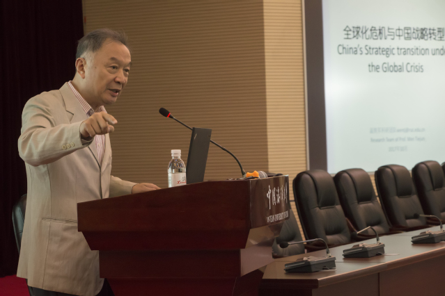 温教授认为,中国能够取得迅速而平稳的发展,主要得益于两个因素。第一,中国在全球化浪潮中坚守住自身的货币主权;第二,面对生产过剩危机,领导人通过“区域发展平衡”“城乡发展平衡”“一带一路”等战略,推动基础设施建设,以拉动投资,使得中国经济在全球经济危机中软着陆。温教授同时指出,现今中国依然面临经济生产过剩的压力,目前中国的应对措施是“贫富差别再平衡”,但要真正实现这个目标,必须改变金融资本的异化地位,使其重新变回一种生产要素。