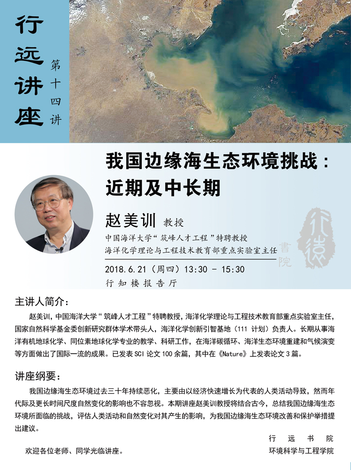 行远讲座第十四讲通知——赵美训谈我国边缘海生态环境挑战:近期及中长期