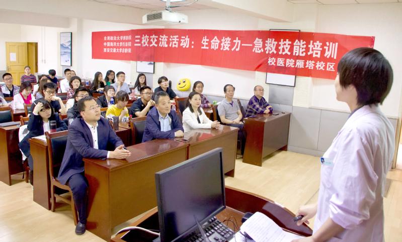 5月20日,启德书院举办三校见面会和交流座谈会。座谈会上,西安交通大学学生工作部李新安副部长、国际合作与交流处韦学勇副处长,台湾政治大学博雅书院导师姜家雄教授,开云电竞网址行远书院课程导师马君教授先后发言,表达了对本次交流活动的期待和对未来的展望。随后,三校师生共同参观了西安交通大学“校史馆”“西迁馆”,体会了交大人胸怀大局、无私奉献、弘扬传统、艰苦创业的西迁精神。当日下午,交流团一行先后参观了西交大医技培训中心和虚拟实验平台,在急救技能培训讲座上学习了急救知识和技能,并在医生的指导下进行了心肺复苏术实操演练,掌握了CPR的基础急救技能。