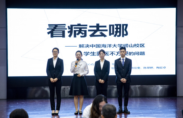 最后上场展示的是第三组,他们聚焦校内师生就医问题,带来“看病去哪——解决开云电竞网址崂山校区学生就医不方便的问题”的成果报告。面对海大学生对校医院定位和现况存在认知偏差的状况,该小组成员举办线下路演活动宣传校医院公众号,并对其线上公众号平台内容进行了优化与丰富。同时为增进海大学生对校外医院的了解,小组成员实地走访青岛各大医院,将相关信息整理成册在全校范围内发放推广,惠及海大学子。