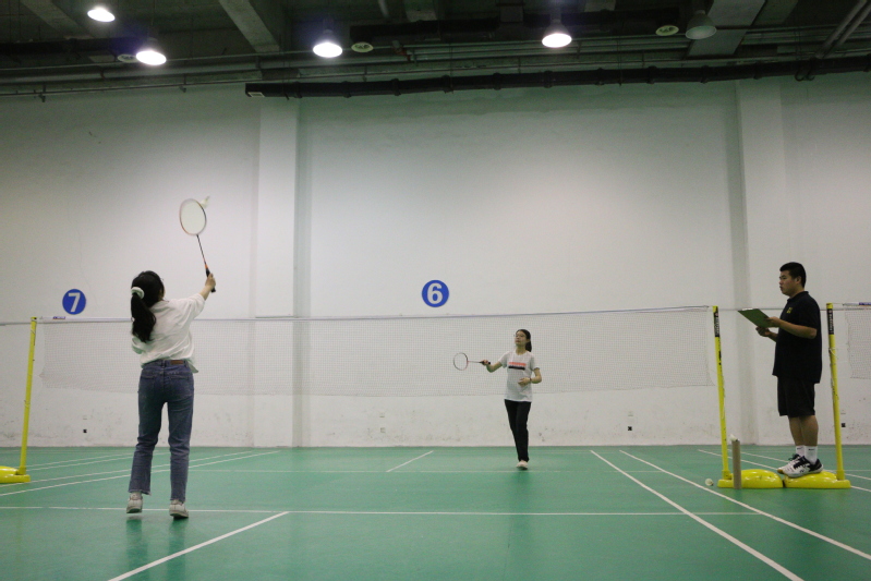 6号场地进行的是女生组的较量,小组赛采取11分单局淘汰赛制。首局比赛打响,五期生管乐之迎战六期生薛媛。管乐之利用灵活的脚步不断调整重心,从接球到扣杀一气呵成,以114的成绩率先晋级。五期生翟晨琪、六期生吴澜昕也不甘示弱,凭借扎实的羽毛球基础,分别以118113的成绩战胜对手,携手挺进冠军争夺赛。