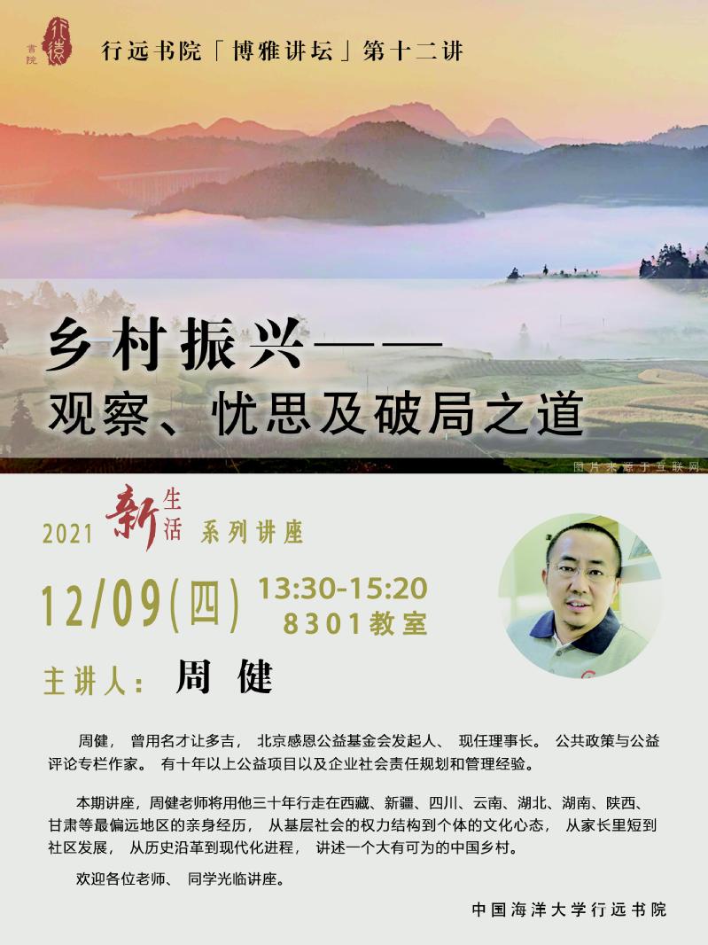 博雅讲坛第十二讲通知 周健:乡村振兴——观察、忧思及破局之道