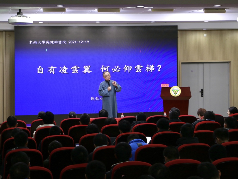 19日晚,钱致榕教授在东南大学人文讲座报告厅作了题为“自有凌云翼,何必仰云梯”的讲座。讲座中,钱教授深入剖析了大学教育的现状及挑战;他指出,在内卷潮流下,分数和考研的无形“铁链”将大学生束缚了起来,学生的焦虑感不断加重,失去了年轻人该有的朝气。钱教授向同学们提出殷切希望,期待同学们能够明确定位,打开视野,放开胸襟,提高格局,构建文理兼备的知识结构,养成认真细致的做事态度,自如应对未来社会的挑战。