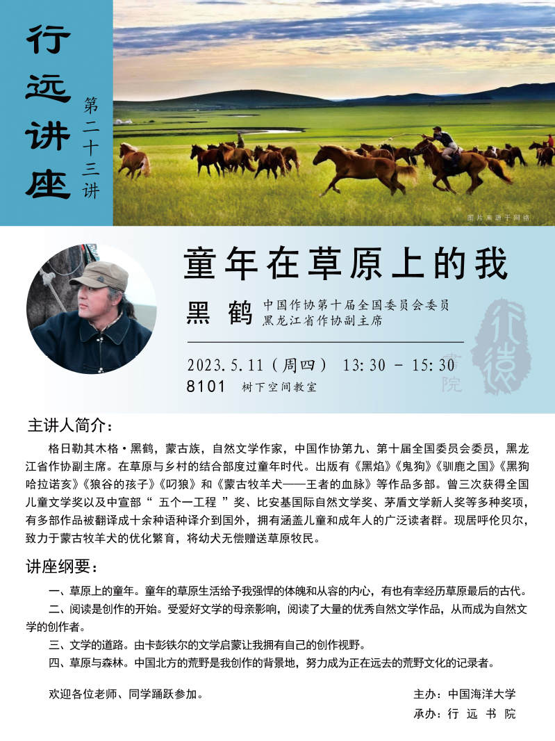 行远讲座第二十三讲通知——黑鹤:童年在草原上的我