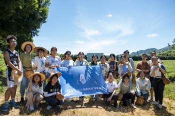 实践队在田间劳作、合影留念