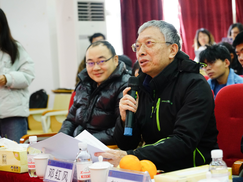 报告结束后,评委老师对此次论坛做了点评。邓红风教授指出,本次论坛论文内容丰富,兼具理论性、实践性和综合性;他建议同学们要通过对比论证,让论文更充分,同时要注重论证的可重复性,能够让他人用论文中的方法进行验证。张若军教授建议同学们写作论文要严谨规范,要提升论文摘要的书写能力;她鼓励大家写论文过程中要多思考,多论证,做到兼具直觉与分析、理性与感性。范中平老师鼓励同学们不要惧怕被否定,要勇敢寻求真理,产出更多文理兼备的论文。徐德荣教授指出,论文写作要从问题出发,注重创新性以及内在逻辑推理,并建议同学们选择参考文献时应采用最新最权威的研究成果。朱自强教授肯定了同学们的努力付出,他同时指出,现场同学的积极提问和汇报者的回应实现了思想的交锋,让本次论坛更有深度。