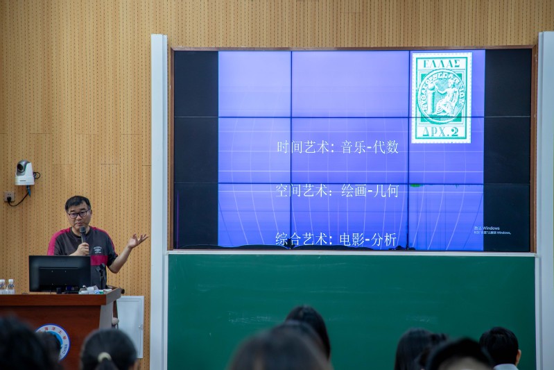 蔡教授以古希腊时期在数学和音乐的发现引入。他讲到,毕达哥拉斯发现了没有整数解的等式恰好与钢琴上无法同时准确弹出第五音和第八音有着一定对应关系,后人在此基础上发展出了和声学。在音乐与数学的关系方面,蔡教授还举例,巴赫运用循环、对称和反对称,成功创作出了和谐的卡农音乐形式,推动音乐研究从和谐音程发展到对位法。