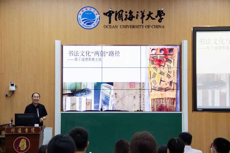 9月11日,行远书院博雅讲坛第十三讲在崂山校区8101教室开讲。著名书法家、书法文化学者、中国书法家协会理事孟鸿声老师担任主讲嘉宾,为海大师生带来一场妙趣横生的分享。行远书院执行院长修斌教授主持讲座。