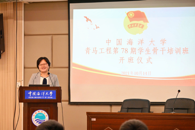 10月14日下午,学校青年马克思主义者培养工程第78期学生骨干培训班开班仪式在崂山校区大学生活动中心学术报告厅举行。校团委副书记钟媛参加了开班仪式。
