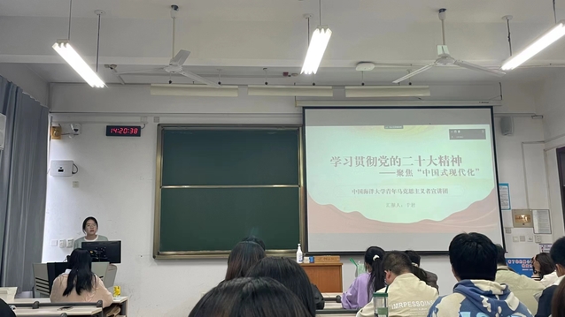 最后,学校青年马克思主义者宣讲团团长于君以“学习贯彻党的二十大精神—聚焦‘中国式现代化’”为主题,从“回首过往篇章,十年勇创辉煌”“聚焦中国特色,开创现代道路”和“再赴赶考之路,踔历奋进前行”三个部分带领学员学习党的二十大精神,引导学员立志做有理想、敢担当、能吃苦、肯奋斗的新时代好青年,让青春在全面建设社会主义现代化国家的火热实践中绽放绚丽之花。