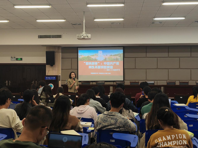 讲座以“四个密码为切入点”。刘乔借用“Year”“Youth”“Dream”“Spirit”四个词语从时间、青年、中国梦、精神四方面讲述中国共产党不断铸就辉煌的关键所在,讲述马克思主义中国化时代化的发展历程,总结过去,展望未来;回顾青年队伍从大革命时期到新时代、新长征路上所发挥的骨干力量,深刻阐释了青年强则国家强的道理;引导我们思考“参演中国式现代化,我们可以做些什么”,强调同学们要弘扬伟大的建党精神,从中国共产党百年奋斗的历史经验中汲取智慧和力量,积极投身社会主义事业的火热建设中。