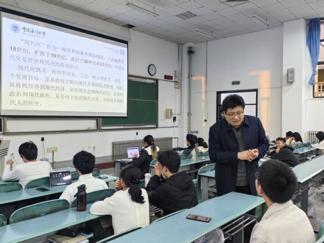 11月21日下午,马克思主义学院党委副书记王付欣在崂山校区作“以进一步全面深化改革进行中国式现代化—深刻领会和把握党的二十届三中全会精神”专题讲座。学校青马工程第81期学生骨干培训班全体成员参加学习。
