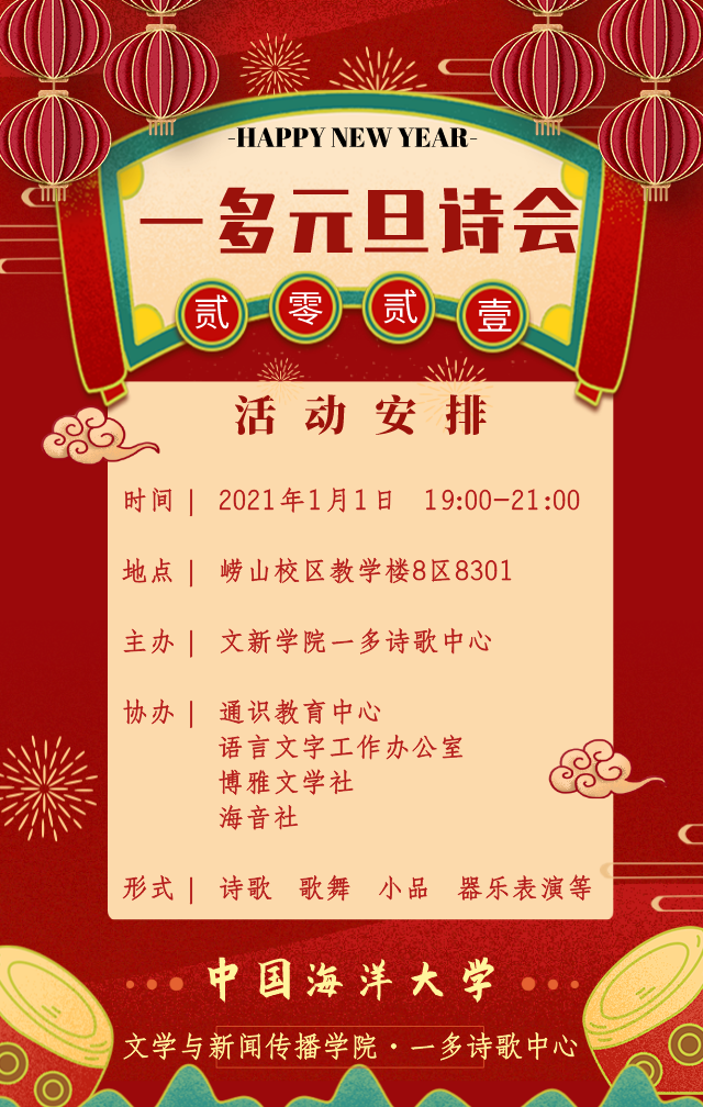 不如来一多诗歌中心举办的“一多元旦诗会”看看,这里群英荟萃,诗香淡墨,只等你的到来~