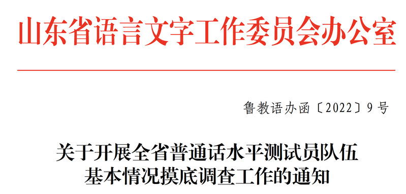 根据《关于开展全省普通话水平测试员队伍基本情况摸底调查工作的通知》(鲁教语办函〔2022〕9号)要求,进一步加强普通话水平测试的队伍建设和质量监督,保障普通话水平测试工作顺利开展,为广大考生提供更高质量的普通话水平测试服务,现对我校普通话水平测试员队伍基本情况进行摸底调查。具体事项通知如下。