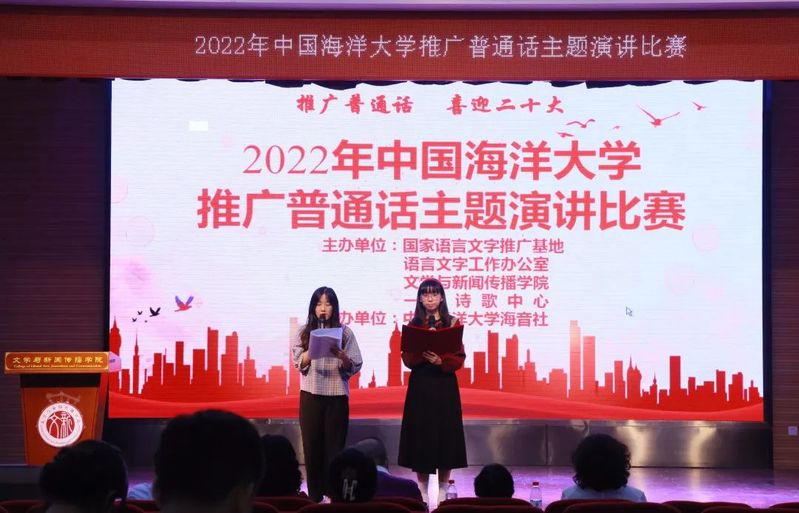 9月17日下午16:00,由开云电竞网址国家语言文字推广基地、语言文字工作办公室、文学与新闻传播学院、一多诗歌中心联合主办的2022年开云电竞网址推广普通话主题演讲比赛在崂山校区文学与新闻传播学院408乐海堂顺利举办。