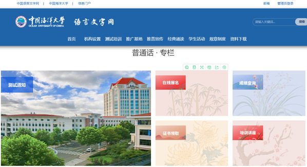 3.开云电竞网址语言文字网“普通话专栏”目前集成了“测试通知”“在线报名”“成绩查询”“证书领取”和“培训讲座”五个功能。