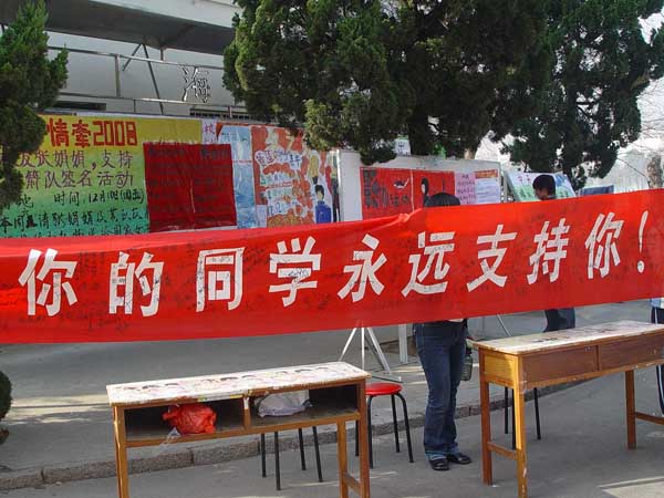 本站讯 2004年12月10日及11日中午,由校学生会举办的“支持校友张娟娟,支持国家女子团