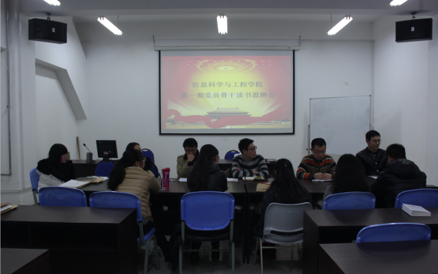 为引导学生党员养成“爱读书、读好书、善读书”的行为习惯,推进学习型学生党支部建设,12月13日晚,信息科学与工程学院在学院北楼A420成功举办第一期党员读书思辨会,各学生党支部成员参加了此次读书会。