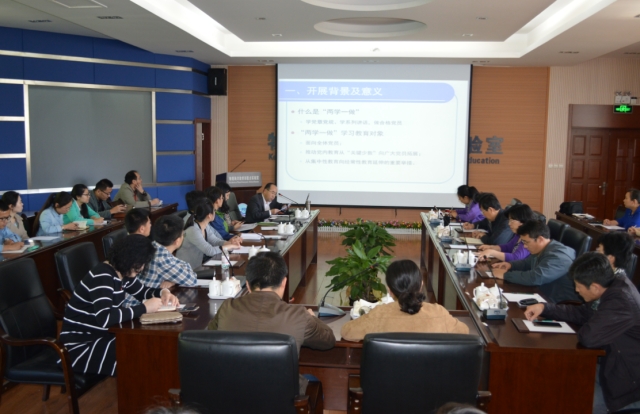 魏军讲述了“两学一做”学习教育的重大意义、总体要求、学习教育内容、方法措施,并就学院党委“两学一做”学习教育安排做了具体说明。他强调,各党支部要规范落实“三会一课”制度,在党员自学的基础上,围绕“讲政治、有信念”“讲规矩、有纪律”“讲道德、有品行”“讲奉献、有作为”中的每个专题,原则上要组织两次集体学习讨论;每位党员都要结合专题学习讨论的主题,撰写4篇心得体会,每篇不少于800字,并要求手写;在全年的专题讨论中,每位党员都要发言;各党支部召开党员大会开展专题学习讨论,应于会前制定方案、会后形成纪要报学院党委。他强调,要把全面从严治党要求落实到学习教育中,各党支部要严格考勤制度,全体党员必须按要求参加集体学习讨论,因故不能与会的党员,需于会前向党支部书记书面请假,准假后方可缺席,请假人员名单,需在会议纪要中列明。他指出,“两学一做”学习教育是当前一项重大政治任务和今年党建工作的龙头任务,必须用心用力、抓细抓实,各党支部支部要根据学院方案制定本支部学习教育实施方案,并将本支部开展“两学一做”学习教育的进展情况及时报学院党委。