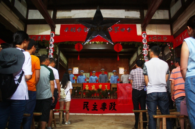 “红色信使”小组成员观看叶坪革命旧址群