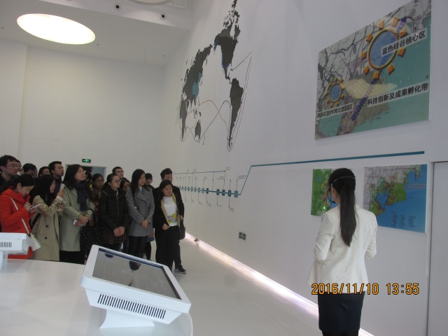第二部分,参观蓝色硅谷核心展览馆。展览馆规模庞大、内容丰富,包括城市客厅、海洋篇、战略篇、历史篇、项目篇和大型沙盘等分区。同学们通过观看宣传片、展板、听取讲解等多种方式按照顺序参观了各个分区,感受到蓝色硅谷的科研魅力和科研实力。