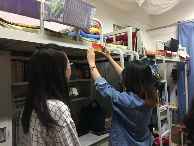 随后,老师们给所有的新发展的党员分发了印有学生党员信息的党员宿舍牌,各位党员在宿舍成员和其他党员的见证下将自己的宿舍牌贴在了自己的床头,并表示会带领自己和周边宿舍的成员一起进行好宿舍文化和学风建设。