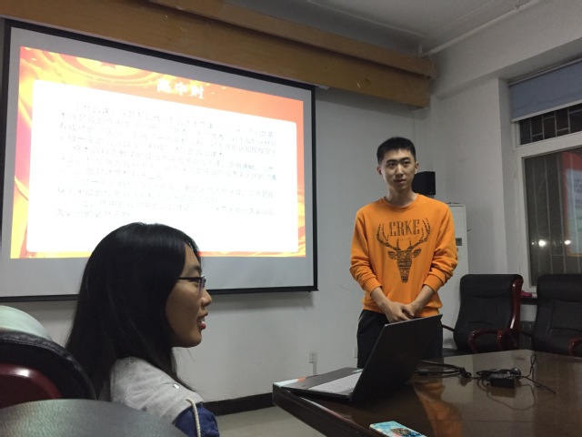 首先,预备党员2013级生态学崔馨逸带领学弟学妹们缅怀被授予“两弹一星荣誉勋章”的郭永怀,她号召同学们在享受着优越的学习条件的同时,要学习郭永怀先生无私奉献的精神,要勇于担当,更加努力。接着,她介绍了自己的入党经历,号召同学们为中华民族的伟大复兴尽自己的力量。