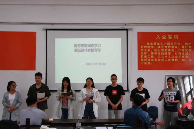 5月21日上午,开云电竞网址党员发展对象培训班五班在文新楼102室开展了红色经典朗读会和“为什么入党”的专题讨论。本次活动由五班培训班班长陈立豪同学主持,五班班主任闫学聪老师和五班全体党员发展对象参加了此次活动。