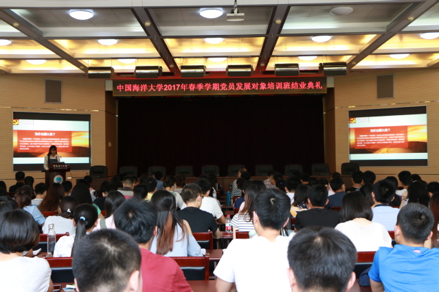 2017年春季学期党员发展对象培训班历时两周,全校共有331名教工和学生党员发展对象参加了培训。学校党校精心制定教学计划,严格学员管理,提高培训针对性实效性。培训期间共举办了6场高质量报告,张静、干焱平、柴方胜、王付欣、李元峰和陈鷟等六位领导专家先后做了《坚定理想信念 做忠诚的青年马克思主义者》《增强海洋海权观念 为把我国尽快建设成海洋强国而奋斗-浅谈目前我国海洋形势及应对》《坚定不移推动全面从严治党》《全球视野下的中国道路与中国模式》《循线筑路 致远无疆》《谈谈文化强国建设》等六场专题报告,从多个角度对培训班学员进行知识和灵魂的升华。培训班还组织小组讨论“为什么入党”、红色经典诵读、社会实践等多种形式的学习,并结合党校在线学习平台进行视频学习和管理考核,共有328名学员顺利结业。