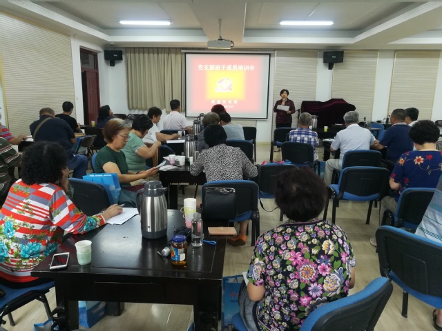 离退休党委副书记、离退休工作处副处长胡保革传达了青岛市委组织部关于党员佩戴党徽的通知精神,详细介绍了关于网上党支部(e-支部)建设有关要求,并进行指导示范。