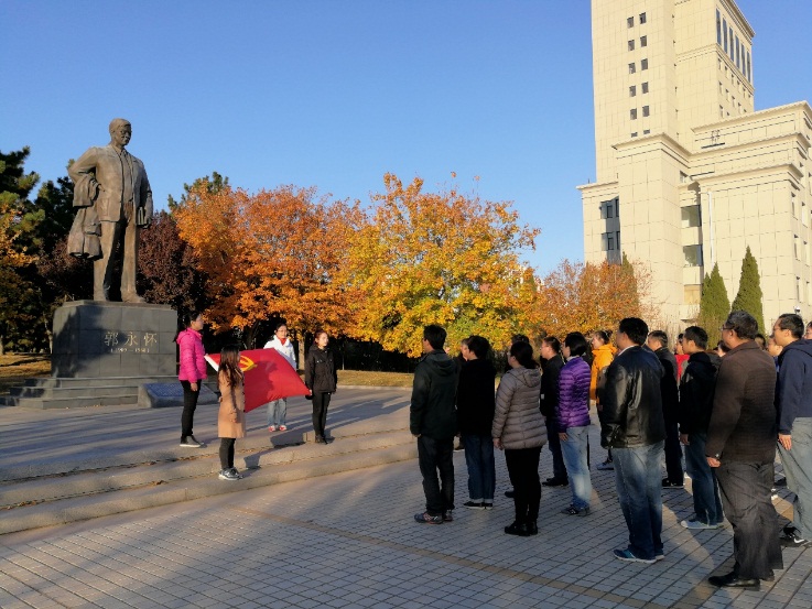 在郭永怀雕像前,全体党员举行了“不忘初心、重温入党誓词,践行两学一做”党员宣誓活动,在庄严的党旗下举起右手,重温入党誓词,庄严承诺作为一名共产党员的责任和义务,坚定自己的信仰。