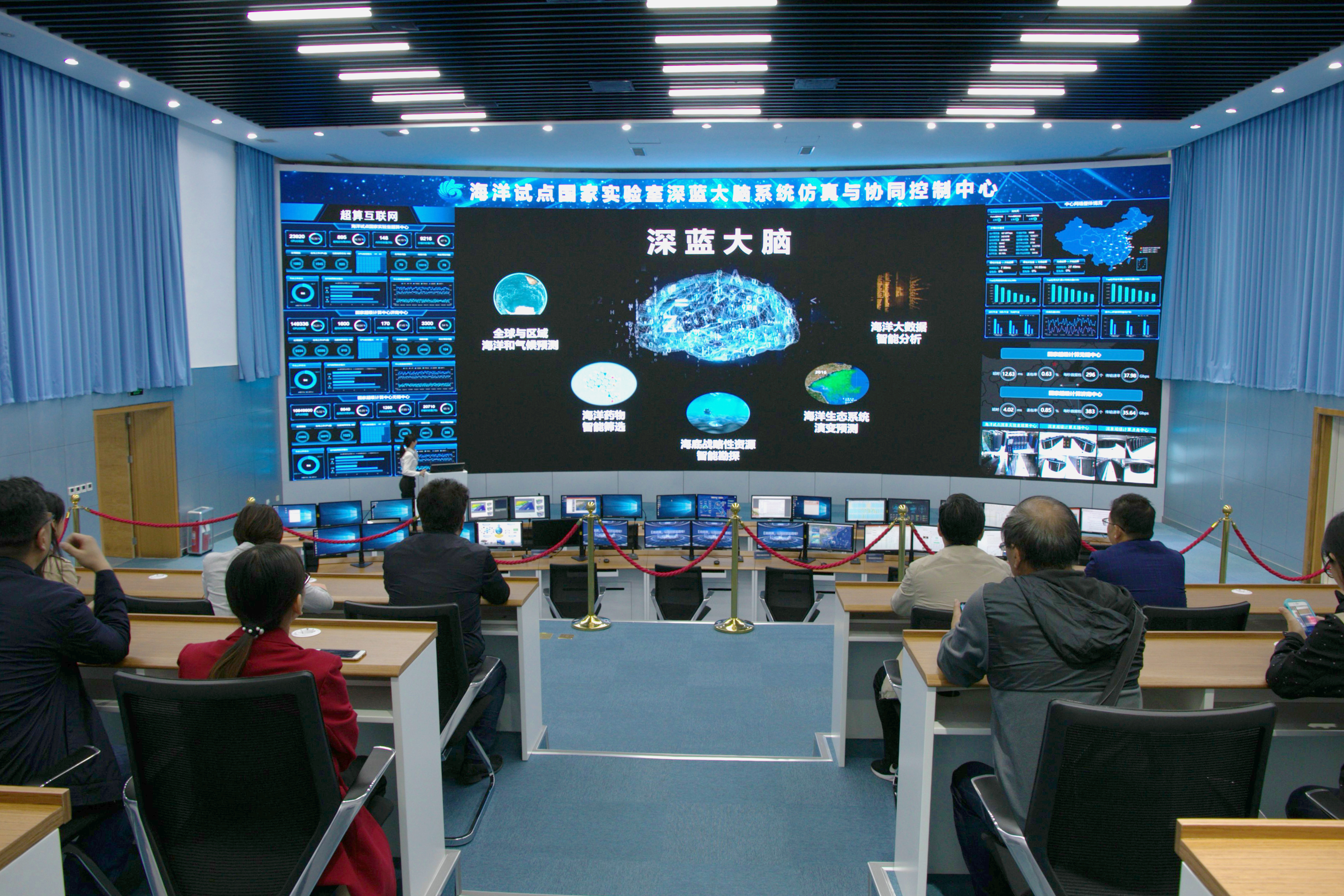 随后,党员们来到青岛海洋科学与技术试点国家实验室,参观了科考船共享平台、创新成果展厅、“透明海洋”观测系统、深蓝大脑系统仿真与协同控制中心及海洋高端仪器设备研发平台。在成果展厅,全体党员深入了解了海洋试点国家实验室的发展历程,有效整合各理事单位科研力量做出的努力,以及在深海探测、海洋资源开发、综合立体海洋观测网络构建、海洋生态环境保护等重要领域取得的成果。“深蓝大脑”系统仿真与协同控制中心是我国海洋领域最快的超算中心,性能超千万亿次,为高性能科学计算与系统仿真、海洋药物筛选等领域提供了强有力的支撑,大大提高了海洋观测和预测能力。在海洋高端仪器设备研发平台车间,党员们参观了各理事单位研发制造的各类具有自主知识产权的高端海洋调查设备,这些高端设备为挺进深海大洋和增强国防海防实力做出了重要贡献。