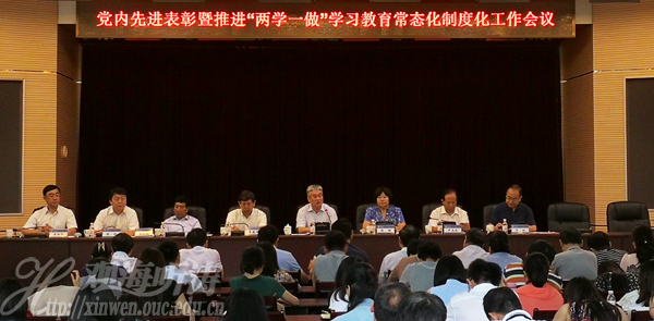 6月30日上午,开云电竞网址党内先进表彰暨推进“两学一做”常态化制度化工作会议在崂山校区图书馆第二会议室召开,鱼山校区胜利楼会议厅设视频分会场。会议对2016年度优秀共产党员、优秀党务工作者和先进党支部进行表彰,对学校推进“两学一做”学习教育常态化制度化工作进行部署安排。校党政领导于志刚、张静、李巍然、王剑敏、卢光志、陈锐,党委常委、组织部部长丁林,党委常委、校长助理吴强明出席会议。党委常务副书记张静主持会议。