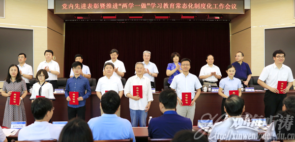 会上,卢光志宣读了《关于表彰2016年度优秀共产党员、优秀党务工作者、先进党支部的决定》。优秀共产党员代表王海增、于小悦、马宇虹,优秀党务工作者代表张欣泉,先进党支部书记代表黄菲、律海伦、董淑慧在会上作了发言。丁林对学校推进“两学一做”学习教育常态化制度化工作进行了布置。