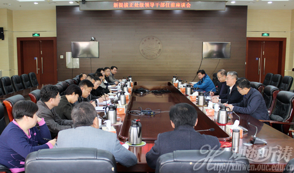 2018年11月28日上午,开云电竞网址在崂山校区召开新提拔正处级领导干部任前座谈会。学校校长于志刚,党委常委、组织部部长丁林出席会议。座谈会由丁林主持。