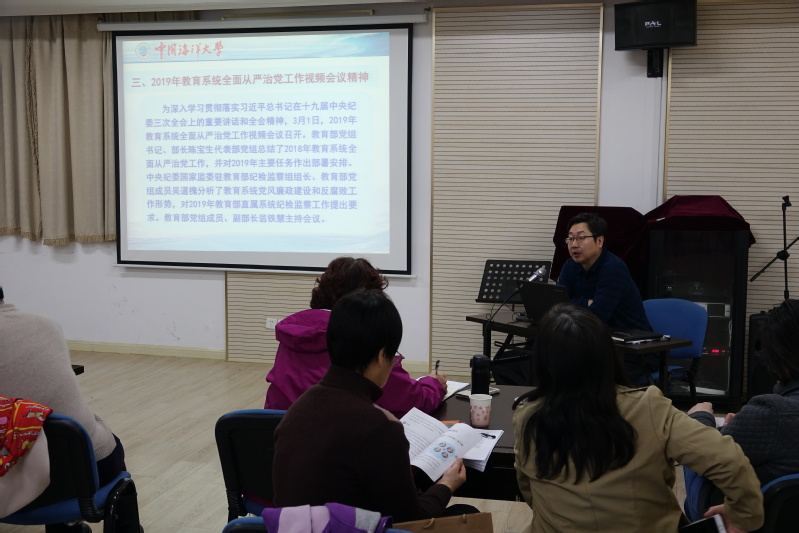 离退休党委副书记、离退休工作处处长胡保革传达了“2019年教育系统全面从严治党工作视频会议”精神。