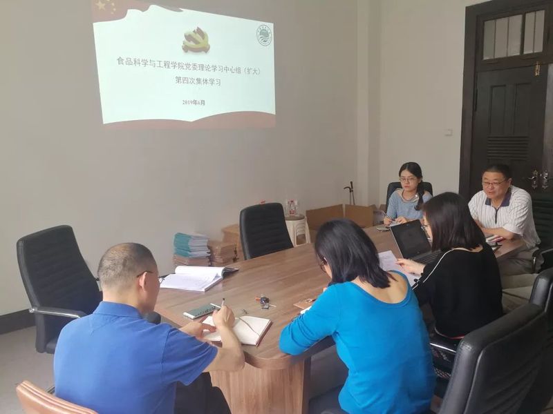 6月25日下午,食品科学与工程学院党委中心组第四次集体学习在六二楼201会议室进行,学院党委委员参加学习,会议由学院党委书记辛华龙主持。
