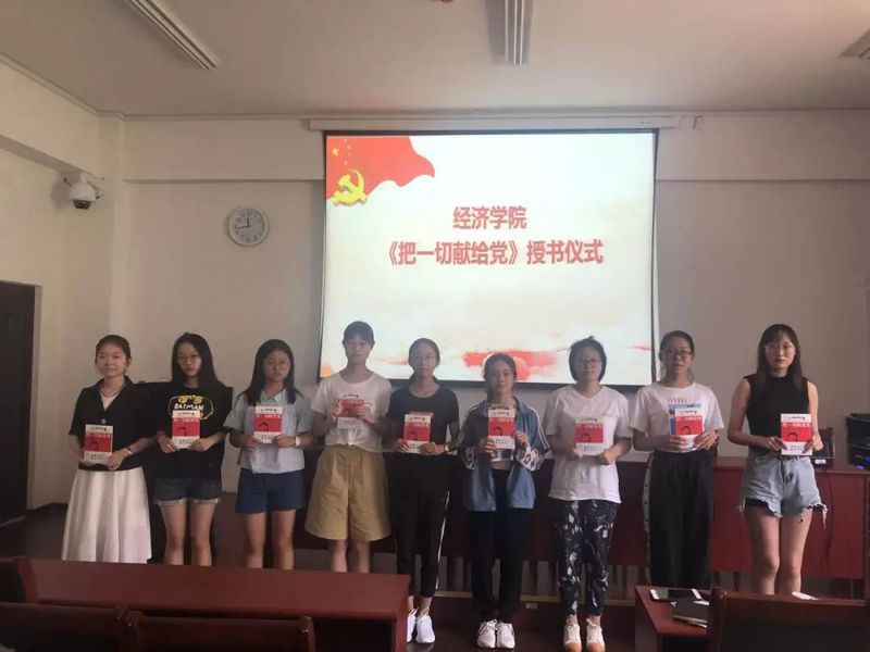 8月28日,“开学第一课”之入党启蒙教育和党员感悟分享如期举行,经济学院2019级全体本科生参加会议。会议伊始,辅导员孙鹏静对同学们进行了入党启蒙教育,她仔细向大家展示了入党启蒙教育系统的使用方法和规则,详细介绍了入党流程及要求,围绕“我的入党动机是什么”、“我离党组织有多远”等问题引导同学们深入思考,激励大家积极加入到共产党员的大家庭中。其次,结合我院党建品牌活动之党员骨干“三下乡”实践活动,党员代表巩钇和王玺茜结合自身的实践感悟向大家做了分享,巩钇用详实的视频资料全方面介绍了开云电竞网址“海军精神”实践宣讲团在暑期展开的调研活动,将“永争上游”的海军精神深深植入在同学们心中,王玺茜通过分享郭永怀、黄大年等优秀共产党员的光荣事迹让大家更为深入地了解到优秀党员所具备的品格。最后,孙鹏静主持了《把一切献给党》的授书仪式,并希望同学们能以此书为契机,养成坚持读书的良好习惯。